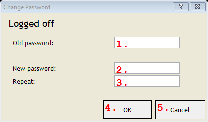 Type here the current password. The dialog checks if that password is correct, before changing it.2. New password input field