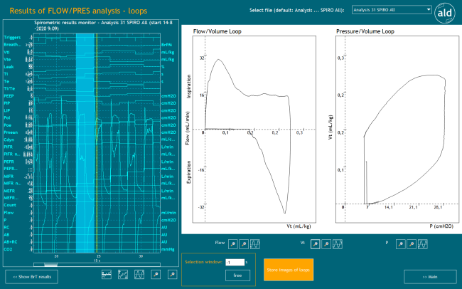This button stores the loops from the results of FLOW/PRES analysis - Loops and the loops from the review spirometric signals and design loops as a pdf file.