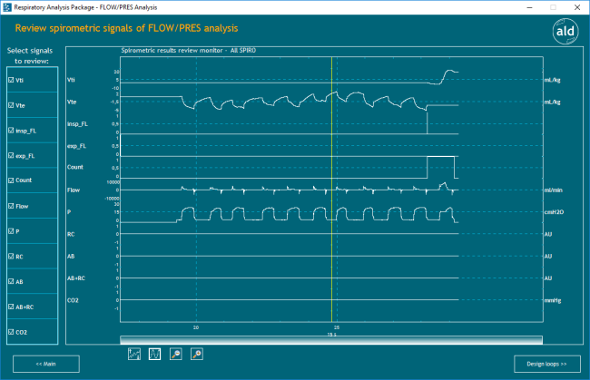 Initialization of the SPIRO APP: Review spirometric signals of FLOW/PRES analysis