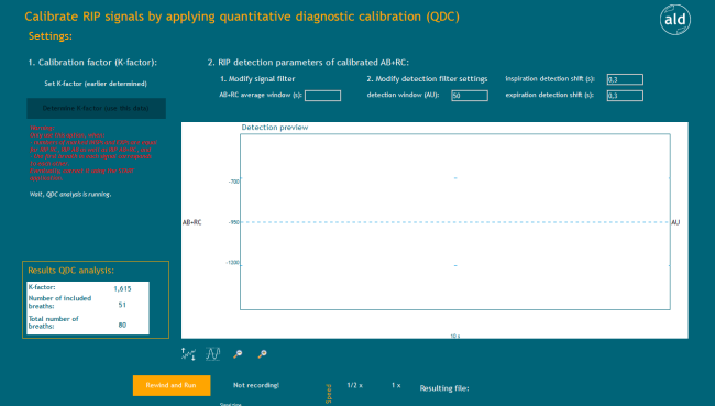 In this viewer the AB+RC signal and the detected inspiratory- and expiratory onsets are previewed.