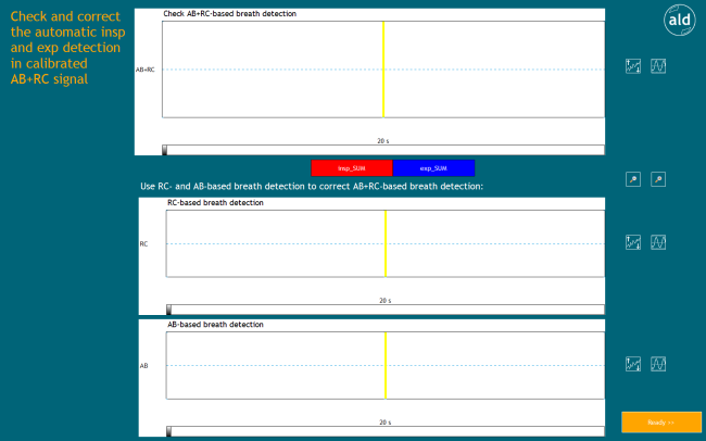 The inspiratory- and expiratory onsets of the calibrated AB+RC signal can be checked and corrected with respect to the onsets of the AB- and the RC signal.