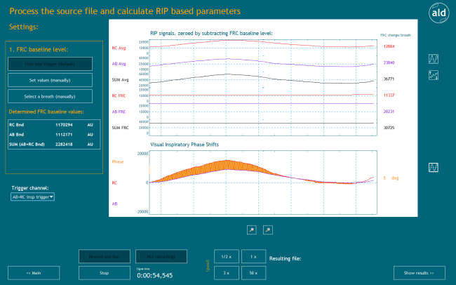 One of the three RIP signals, respectively the corresponding triggers need to be chosen as trigger channel from the drop-down list. The trigger channel is used to trigger the breaths for further calculations.