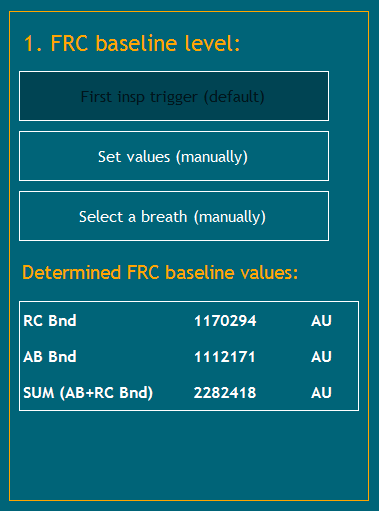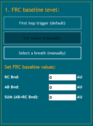 If the FRC baseline levels are set manually, they can be entered into the Set FRC baseline values: panel below.
